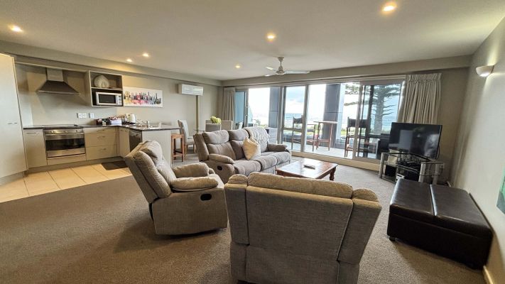 This self-contained apartment features full kitchen facilities, air-conditioning, laundry facilities, a satellite 42-inch flat-screen TV, DVD player and a balcony with full ocean views.